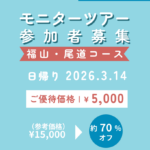※このモニターツアーは、福山市(観光戦略課)が実施する備後圏域周遊観光推進事業の一環です。