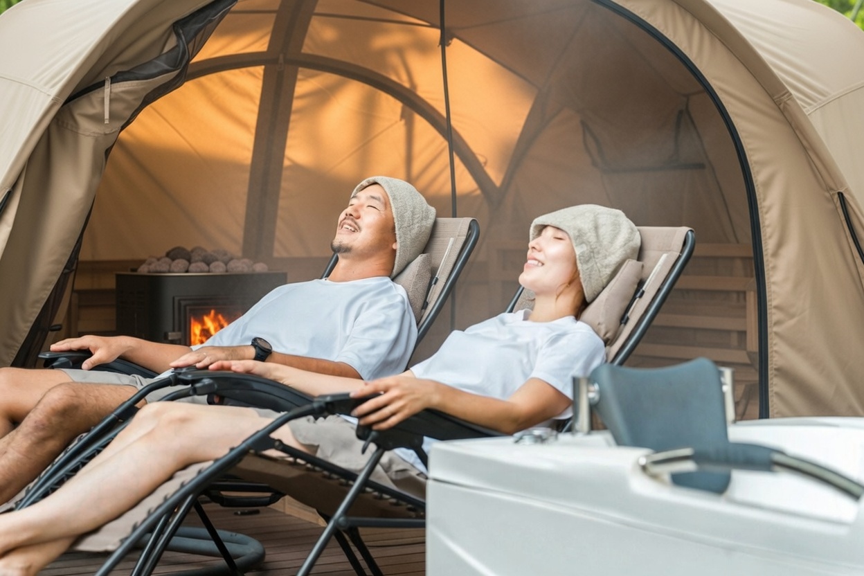 マリンスポーツにはまだ少し肌寒い時期・・・。ということで、テントサウナをご用意します。火照った体を3月の海で整えてみては?!