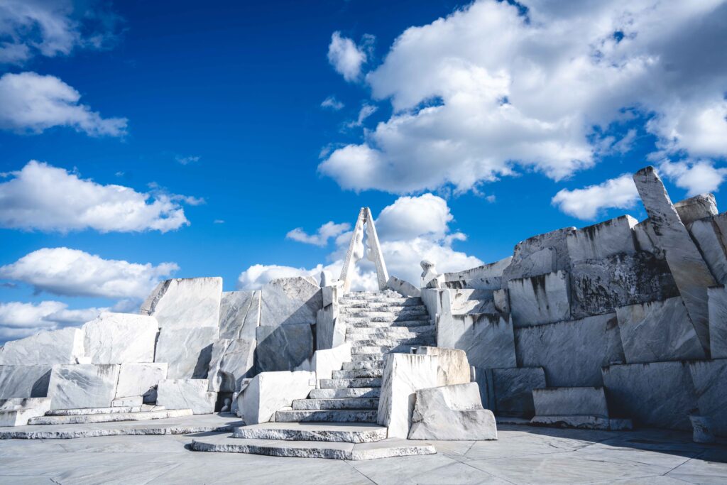 広さ5,000平方メートルにもおよぶ白い大理石の庭園。世界を舞台に活躍されている彫刻家 杭谷一東(くえたにいっとう) 氏にその制作を依頼しているものです。